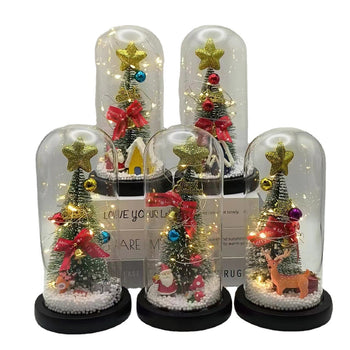 Dekor Krishtlindjesh me pemë dhe drita LED në kupolë, transparente dhe festiv