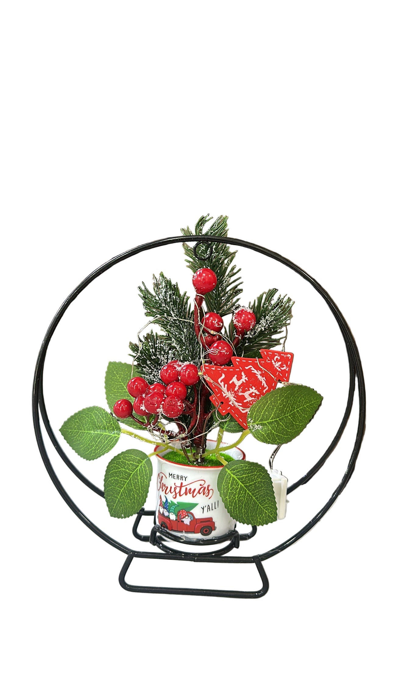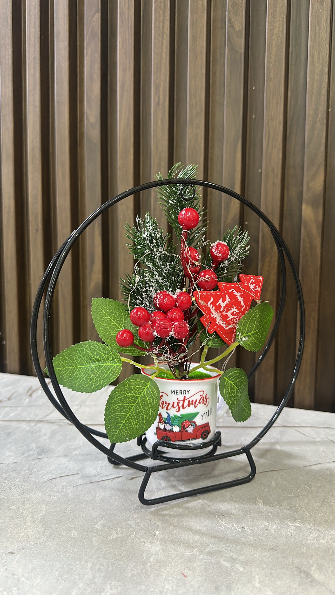 Dekor për Krishtlindje, filxhan xingato në mbajtëse metalike rreth xherry