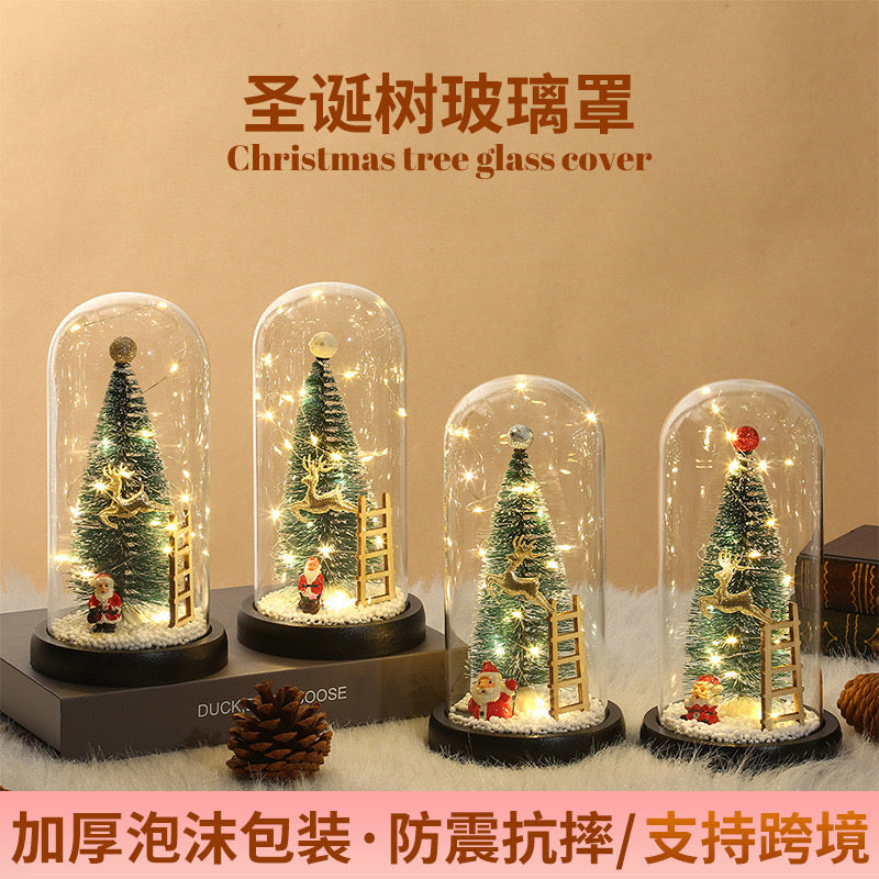 Dekor elegant Krishtlindjesh me pemë të vogël, figura festive dhe drita LED brenda një kupole transparente. Krijon atmosferë të ngrohtë dhe magjike për shtëpinë gjatë festave. Në modelet: Babagjysh, drerë....