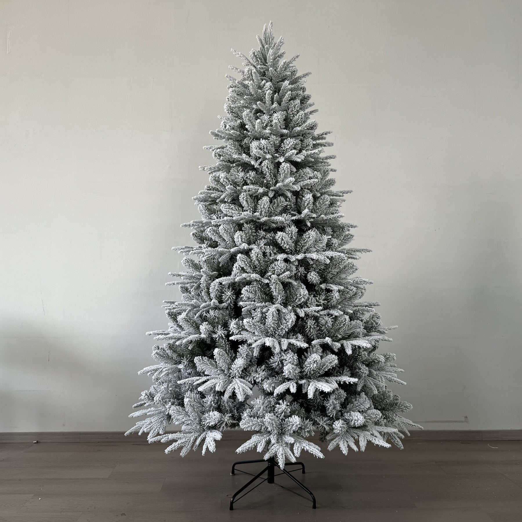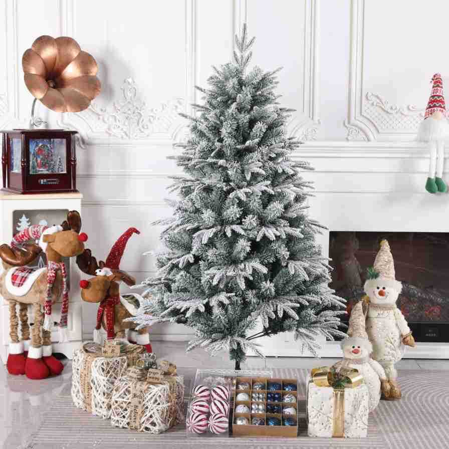 Pemë artificiale me efekt dëbore, me degë të dendura që krijojnë pamje dimërore magjike – perfekte për dekorin e Krishtlindjeve.