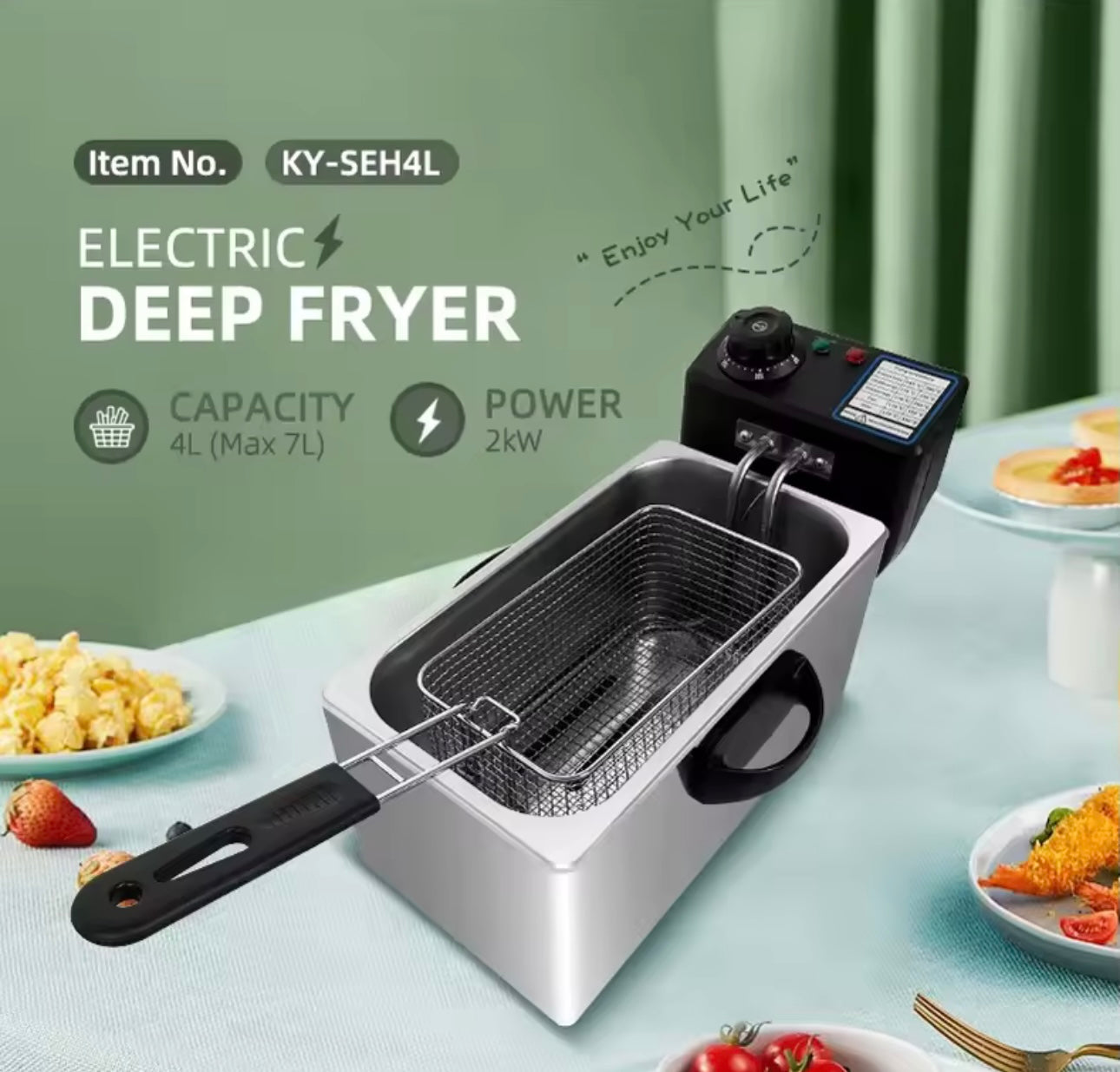 Fritezë elektrike me kapacitet 3.5L dhe fuqi 2000W, ideale për patate, mish dhe ushqime të skuqura në sasi të mëdha.