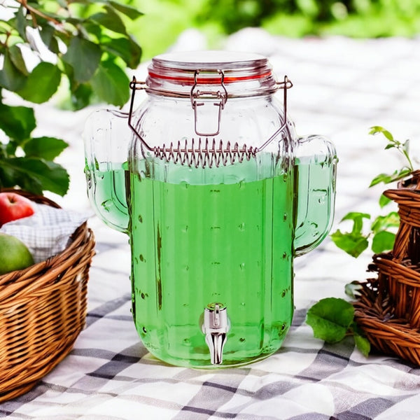 Dispenser lëngjesh në formë kaktusi; Materiali: Qelq; Mbyllje hermetike; Kapacitet 8 Litra; Gjatësi 30 cm