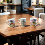 Tas qeramik me dizenjo lulesh gri dhe detaje të zeza