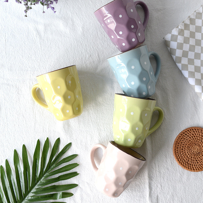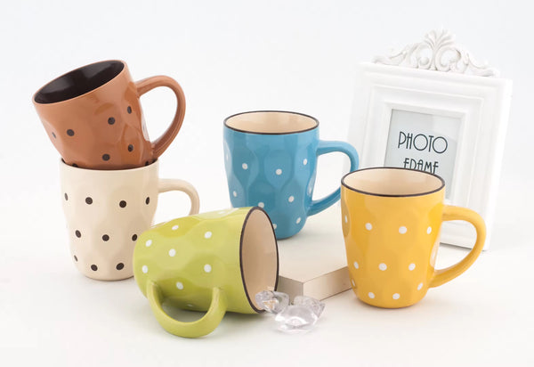 Filxhan çaji me pika dhe rombe; Materiali: Qeramik; Ngjyrat: Jeshile dhe Portokalli; Përmasat: 8x 9.5 cm