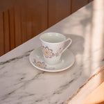 Tas qeramik me dizenjo lulesh gri dhe detaje të zeza