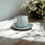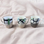 Tas qeramik me dizenjo lulesh gri dhe detaje të zeza