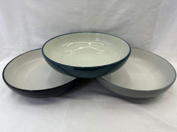 Tas qeramik me dizenjo lulesh gri dhe detaje të zeza; 23 cm