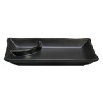 Pjatë melamine e zezë, formë katrore me tre ndarje 20 cm x 20.5 cm