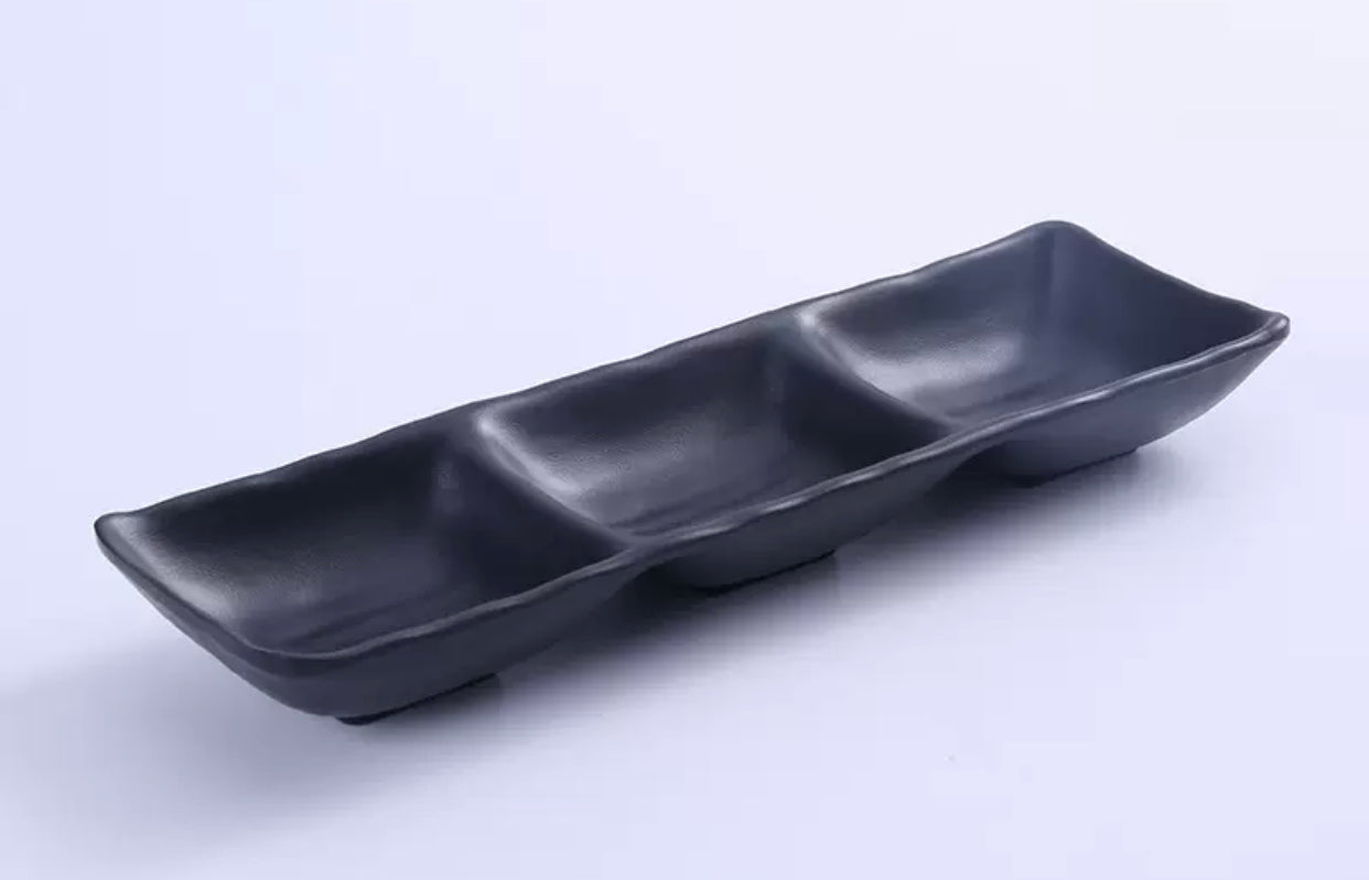 Pjatë melamine e zezë me 3 ndarje për salca 26 x 8.5 cm