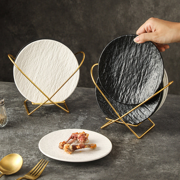 Pjatë melamine e zezë me sipërfaqe të punuar