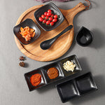 Pjatë melamine e zezë shoqëruese për salca me 2 ndarje 17.5 cm x 9 cm