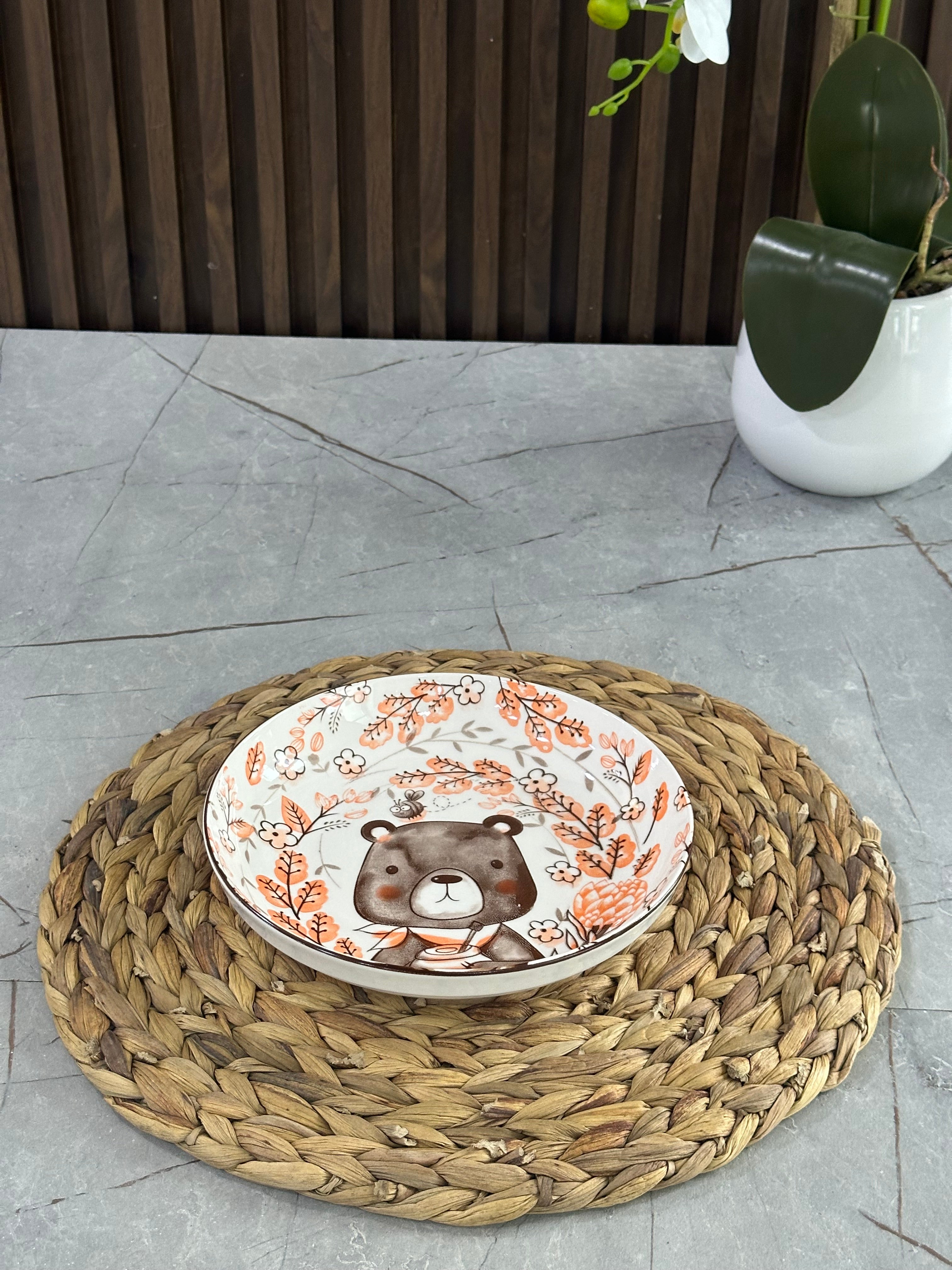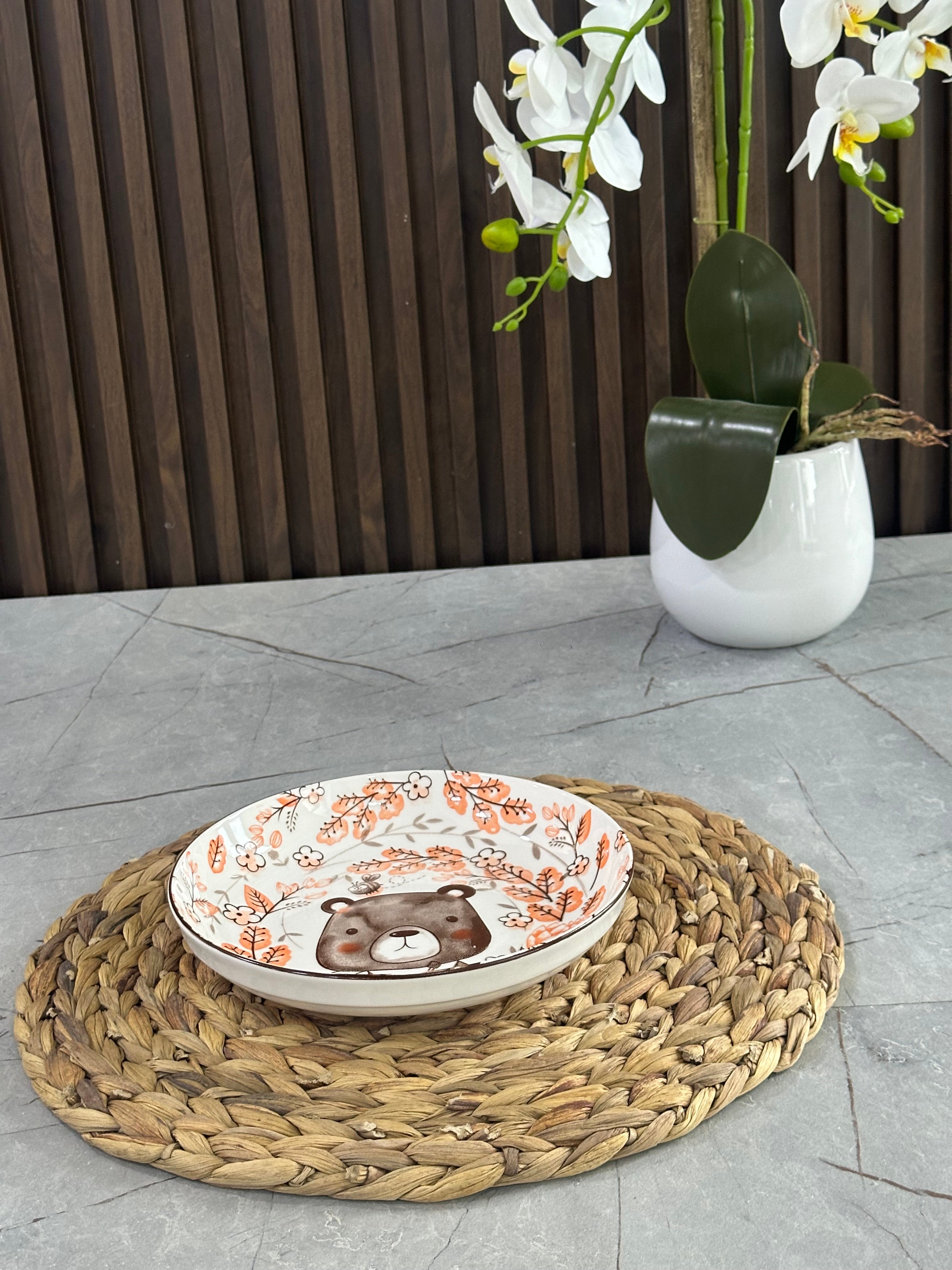 Materiali: porcelan Ngjyra: portokalli/ kafe/ e bardhë Diametri: 21cm