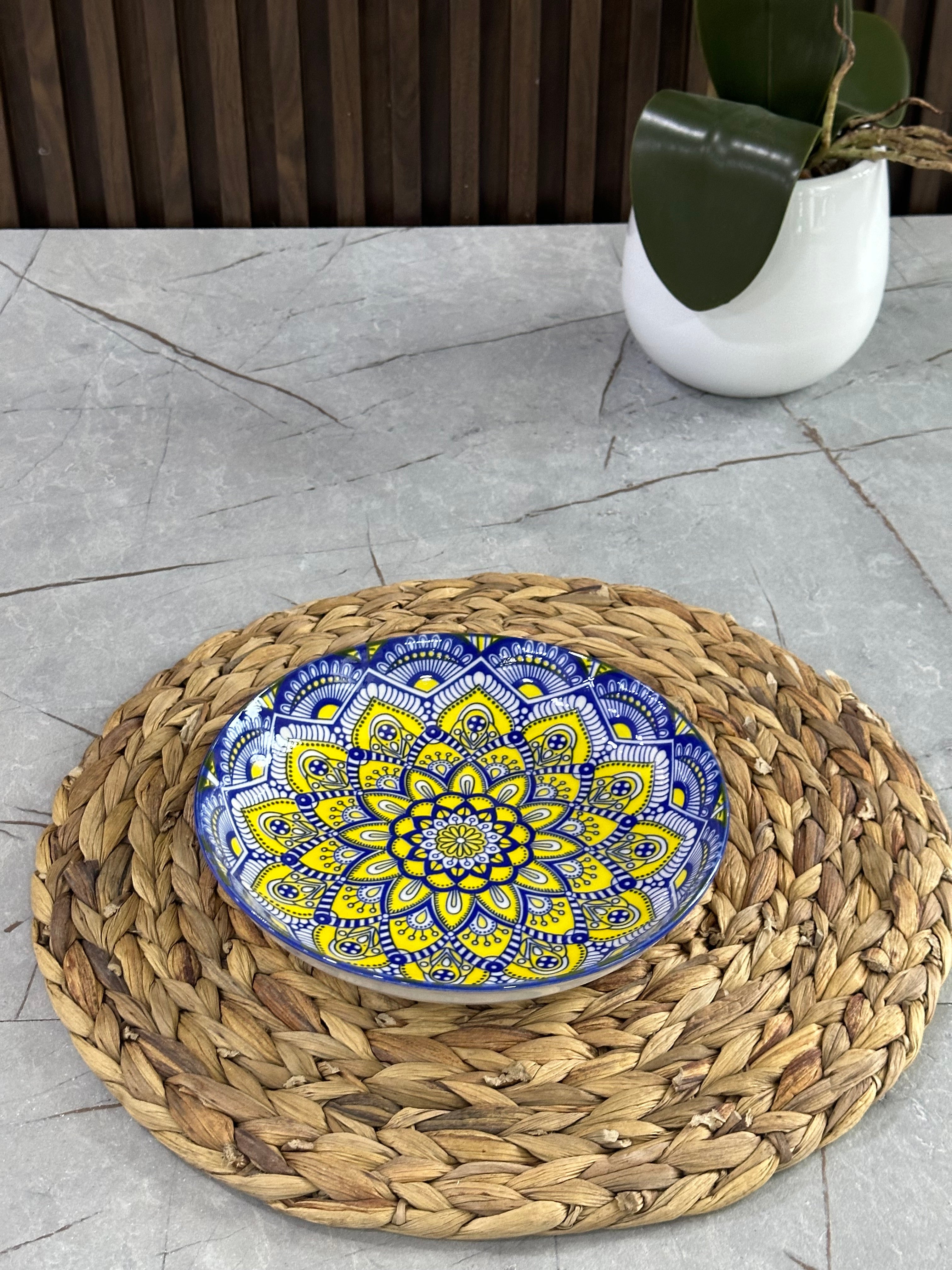 Materiali: porcelani Ngjyra: blu + e verdhë Diametri: 21cm