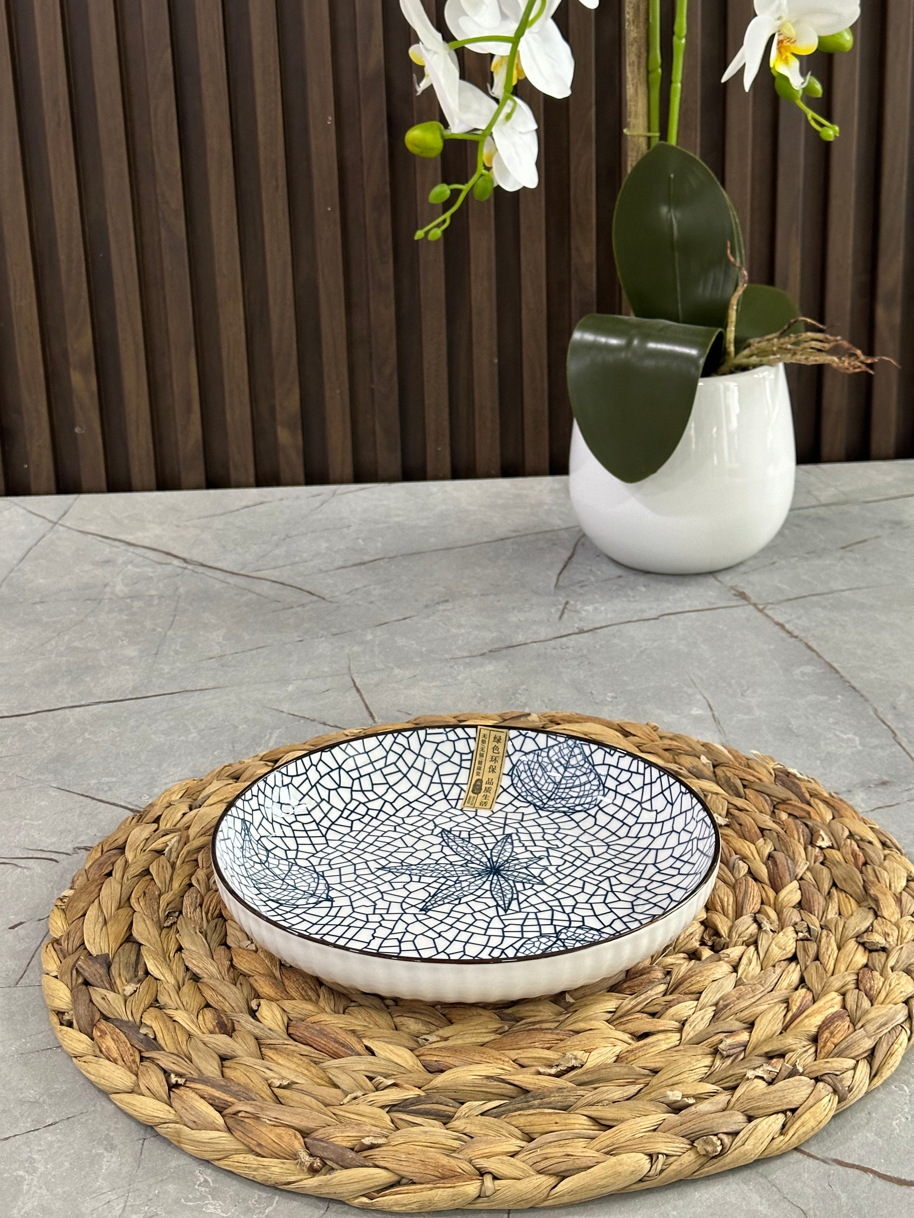 Materiali: porcelani Ngjyra: e bardhë + blu Diametri: 18cm