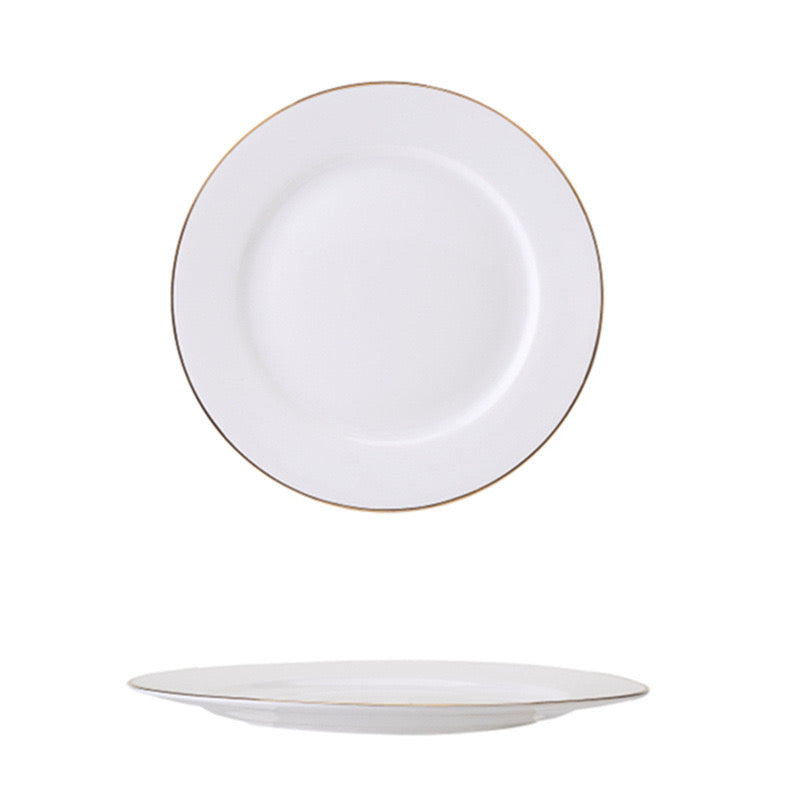 Pjatë porcelani e cekët me kontur gold; Përmasa: 30 cm; Edhe në përmasë: 23 cm Kodi: 65694-10; 25 cm Kodi: 65694-11