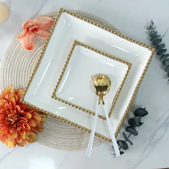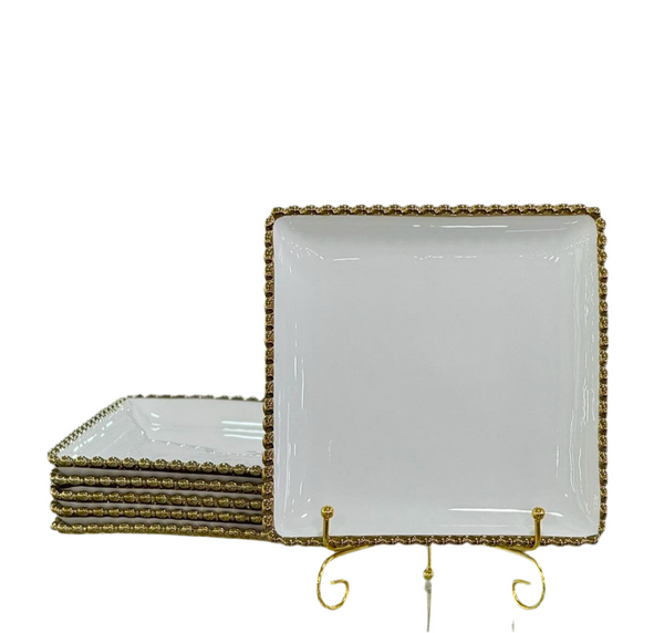 Pjatë qeramike me kontur gold; Me shkëlqim; E sheshtë;; Përmasat: 20 cm