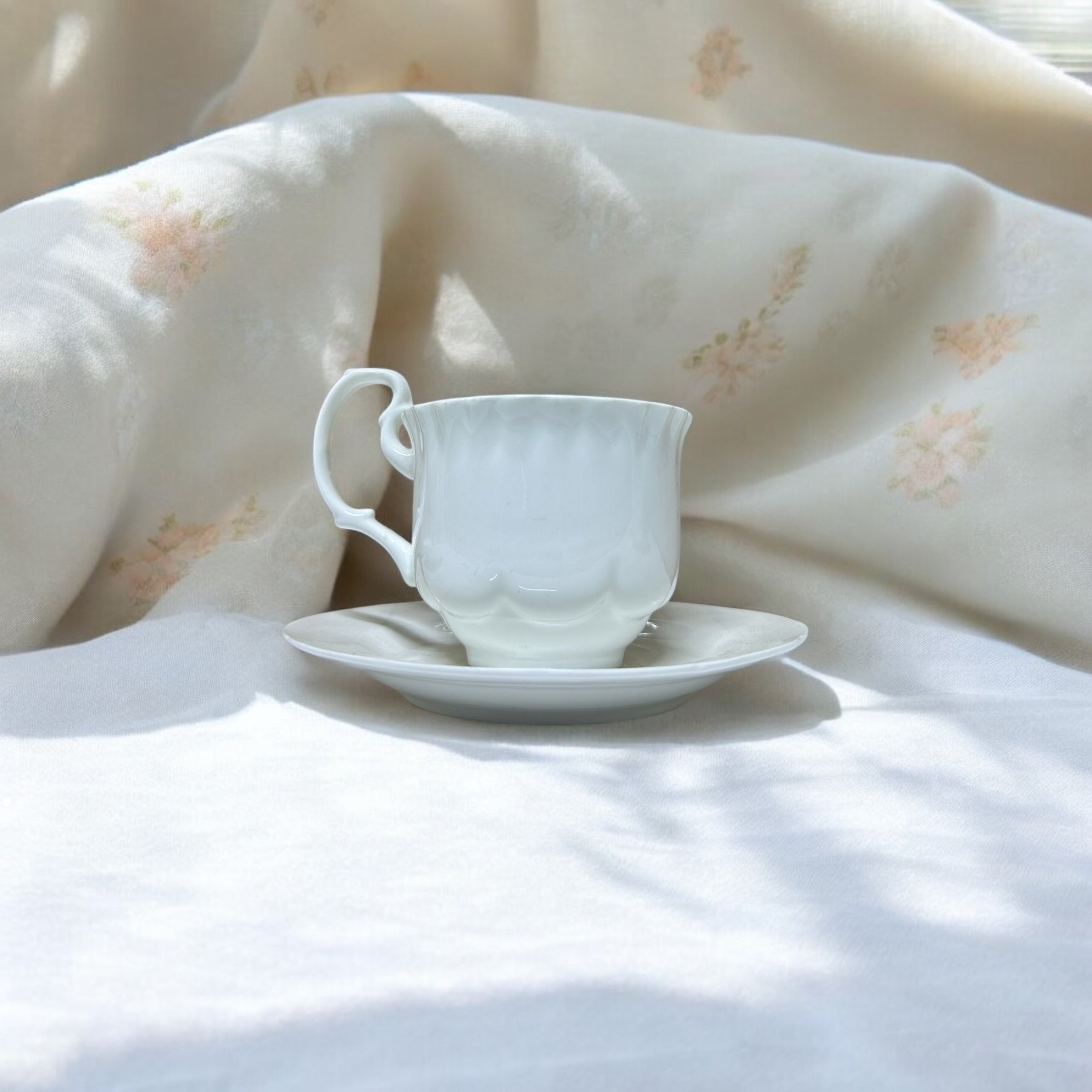Tas qeramik me dizenjo lulesh gri dhe detaje të zeza