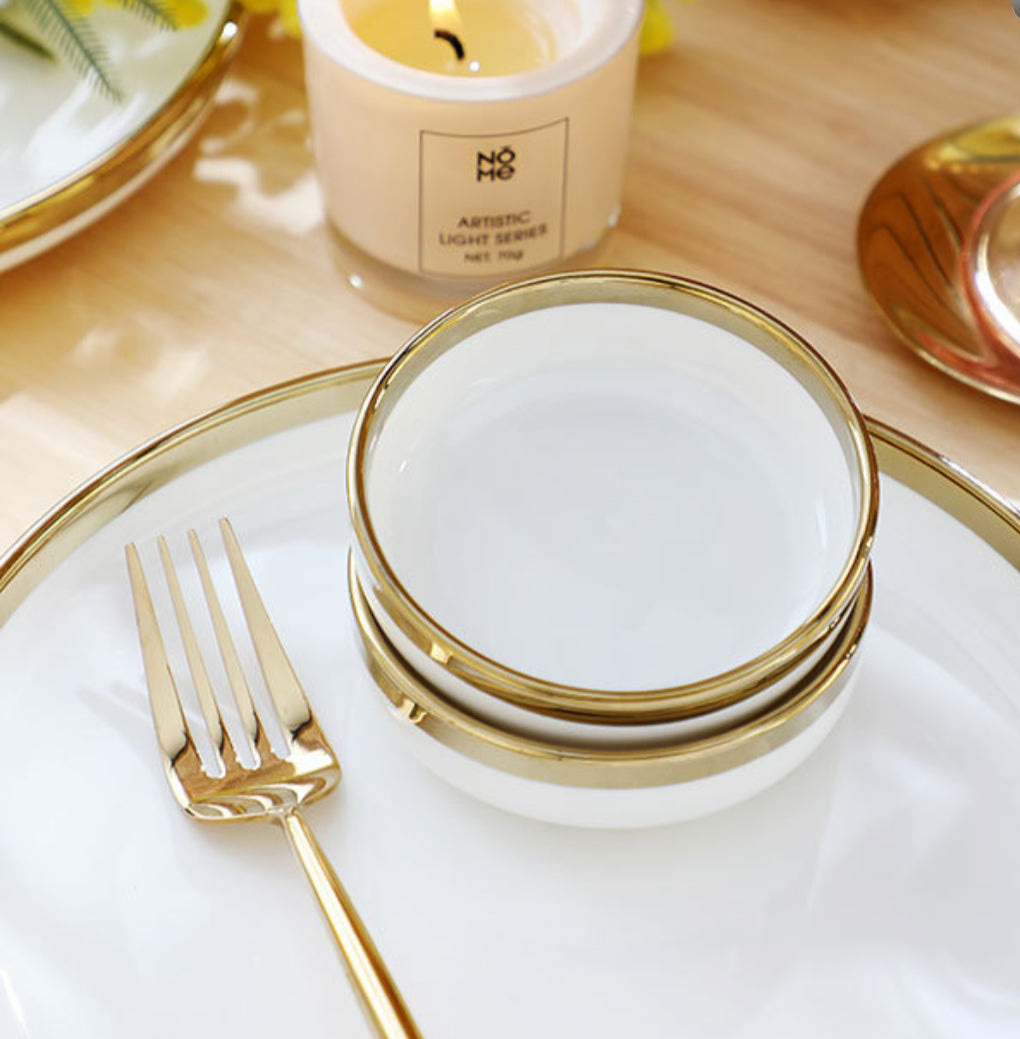 Tas qeramike me kontur gold; Ngjyra: e bardhë; Përmasa: 15 cm Kodi: 66166-27 , përmasa: 17 cm Kodi: 66166-28, përmasa 20 cm Kodi: 66166-29, përmasa 22 cm Kodi: 66166-30