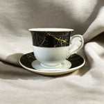 Tas qeramik me dizenjo lulesh gri dhe detaje të zeza