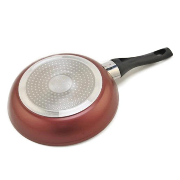 Tigan alumini në ngjyrë bakri (3 përmasa); Përmasa: 28 cm Kodi: 16775-16, Përmasa: 24 cm Kodi: 16775-15; Përmasa: 20 cm Kodi: 16775-14