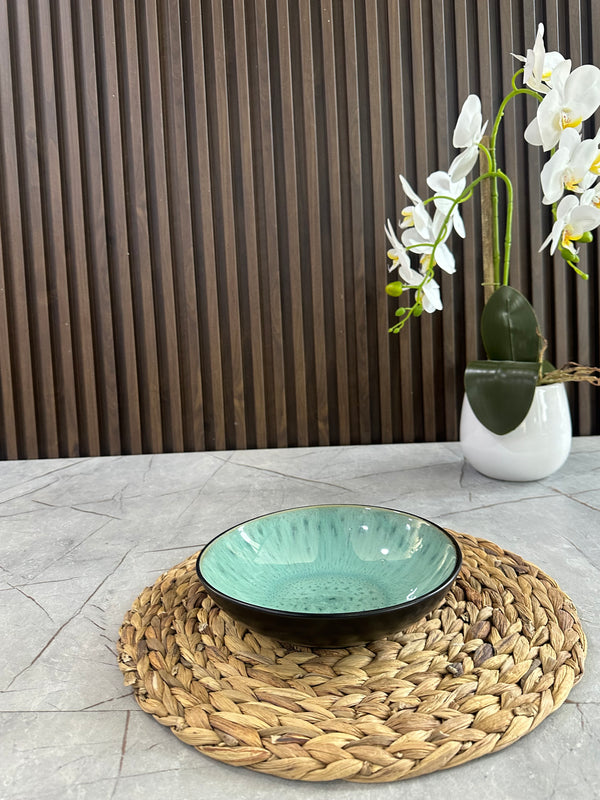 Pjatë melamine e zezë me sipërfaqe të punuar