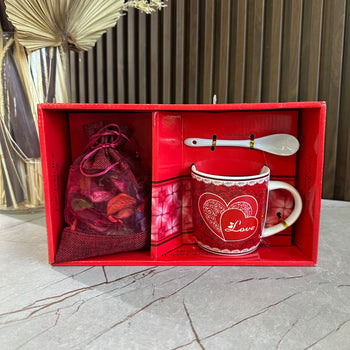 Set dhuratë romantike me filxhan “Love”, lugë dhe aromtizues
