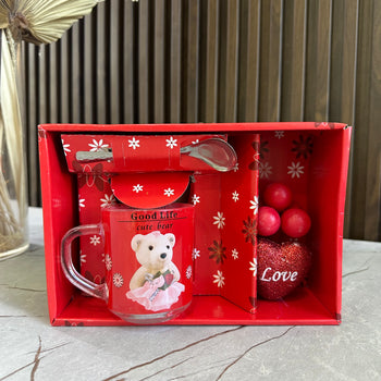 Set dhuratë “Cute Bear” me filxhan qelqi, lugë dhe dekor