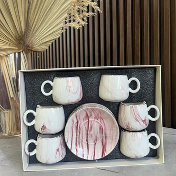 Set filxhanësh qeramike me pjata, dizajn mermer