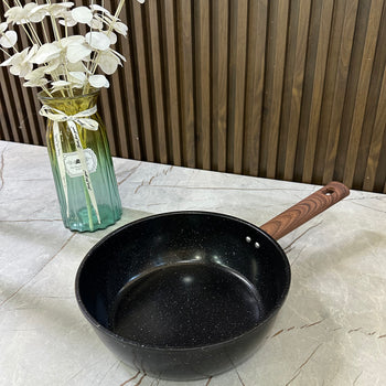 Tigan i thellë kuzhine anti-ngjitës me dorezë druri