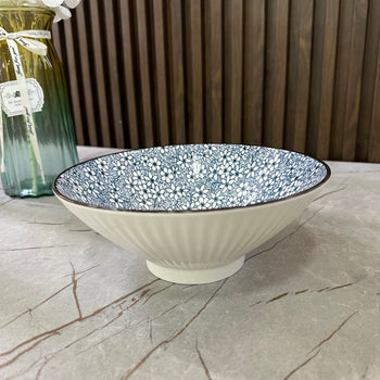Tas qeramike me dizenjo lulesh blu dhe bazë të valëzuar