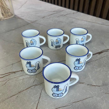 Set tasash qeramike me motive gjeometrike blu, 3 copë
