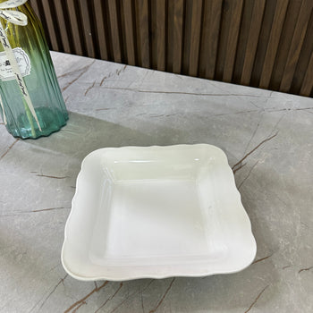 Pjatë katrore porcelani e bardhë me valëzime anësore, për servirje
