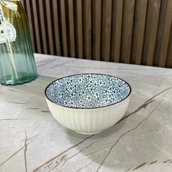 Tas qeramik dekorativ me dizajn floral blu & të bardhë