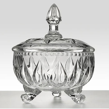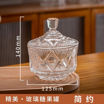 Mbajtëse rrethore me kapak për karamele, material qelqi