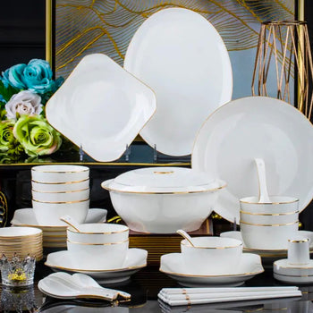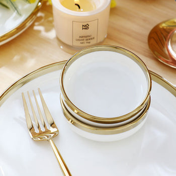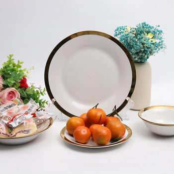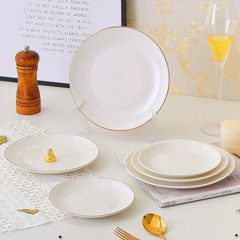 Pjatë porcelani me kontur gold dhe cepa rrethore