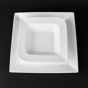 Pjatë e sheshtë porcelani me cepa të rrumbullakosur