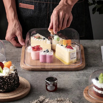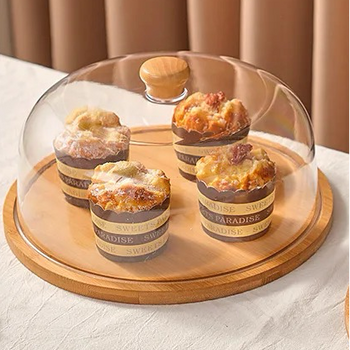 Kapak mbulues për ëmbëlsira me dorezë bamboo