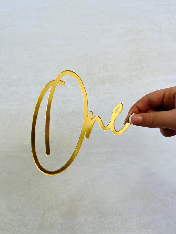 Cake topper me shkrim "One"