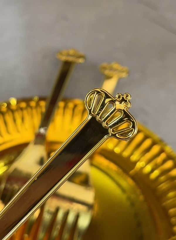 Pirunj plastik me kurorë për ditëlindje; Ngjyra: Gold, silver; Pako 6 copë