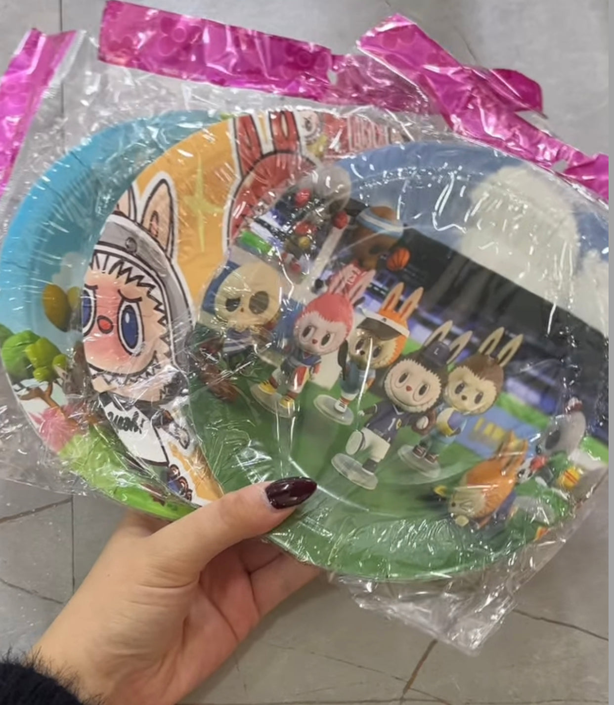 Pjata kartoni për ditëlindje fëmijësh me Labubu