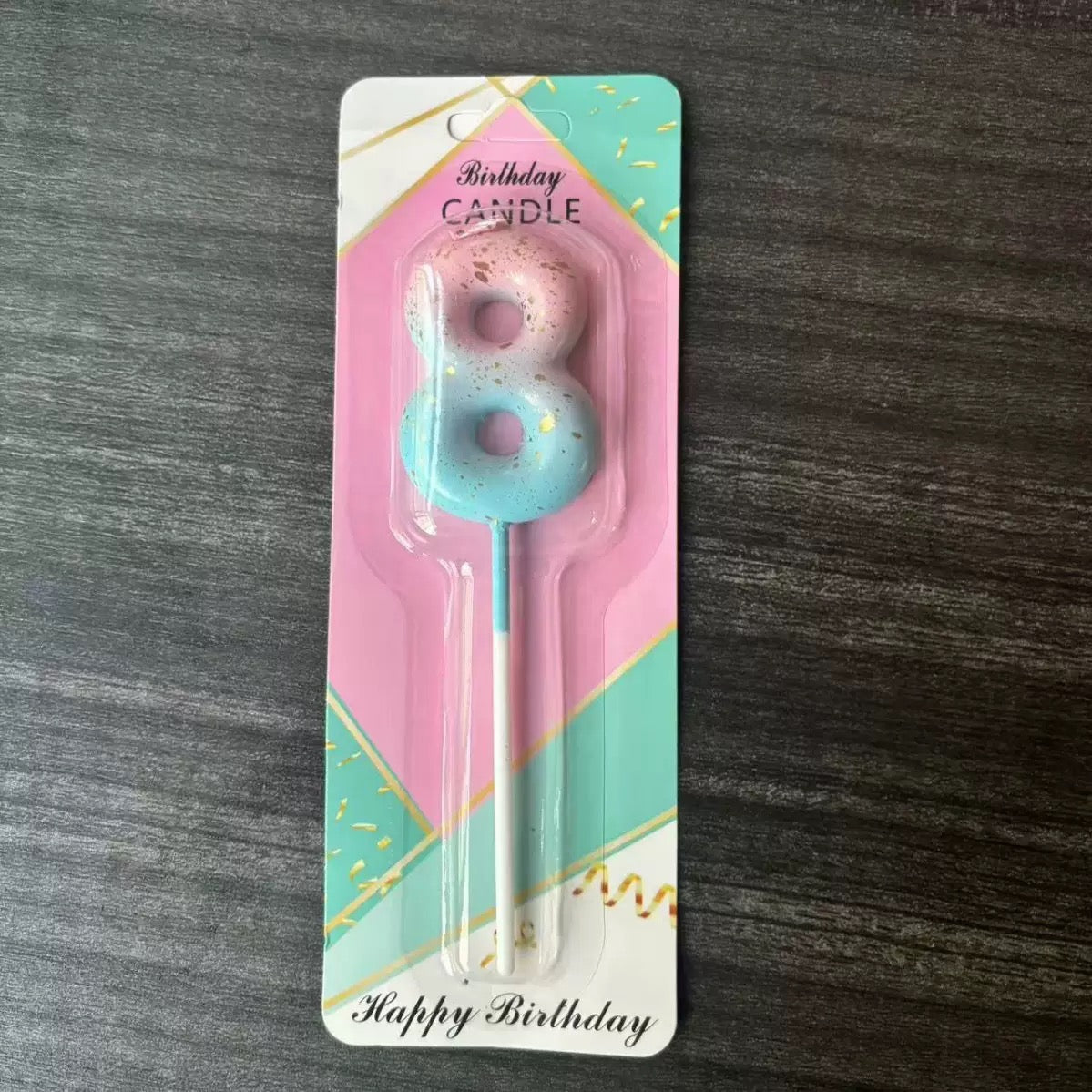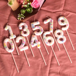 Qirinj dekorativë për tortë ditëlindjeje në formë numrash, me dizajn të bukur dhe ngjyra festive.
