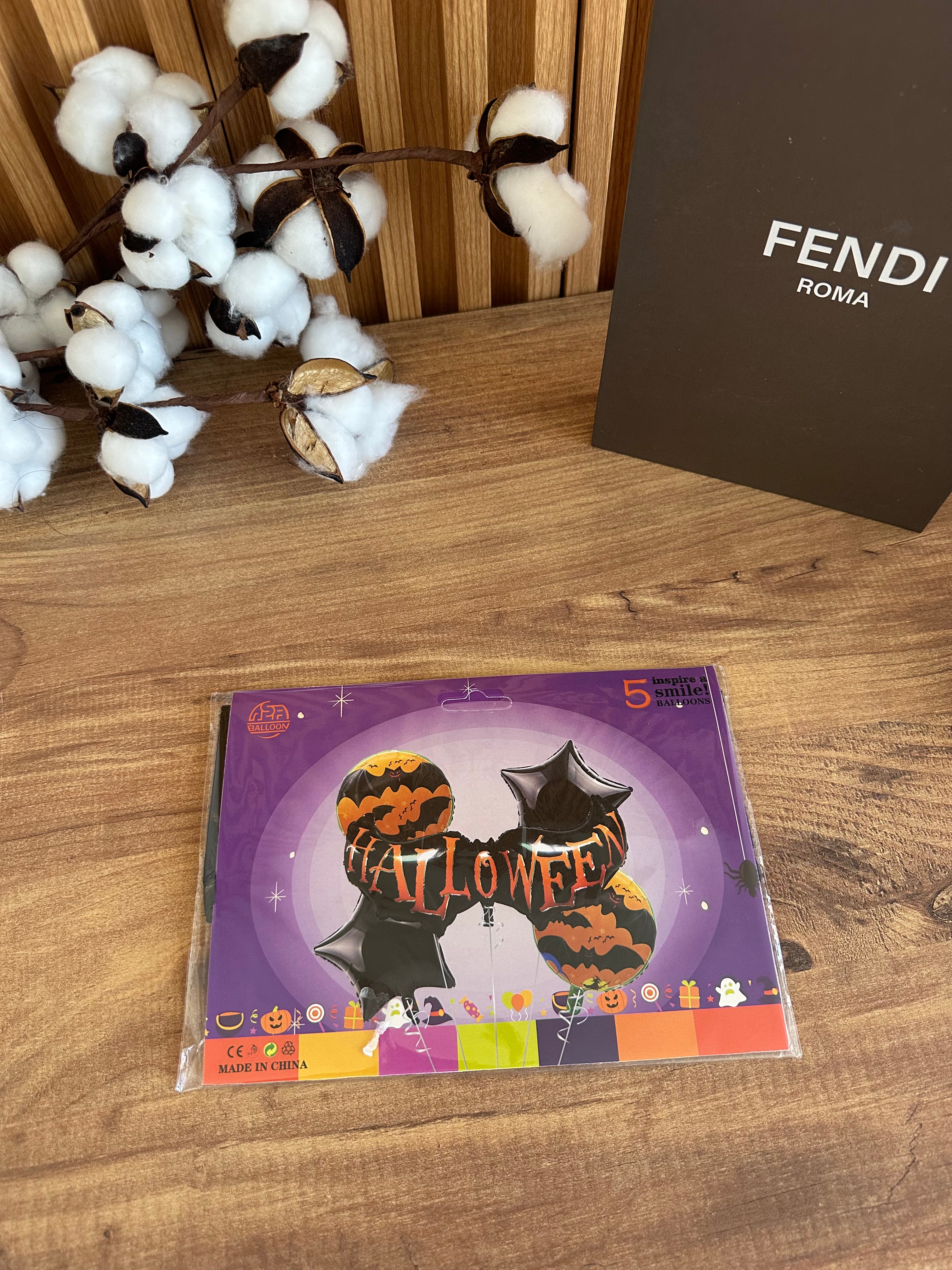 2 balona të rrumbullakëta me dizajn kungujsh.