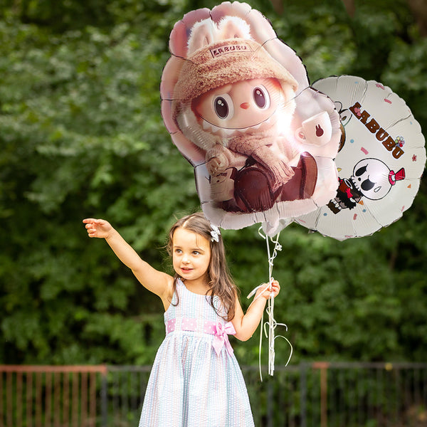 Set me 18 pjesë për dekor ditëlindjeje me Labubu që përfshin: 2 tullumbace foil në formë ylli, 2 tullumbace rrumbullake me Labubu dhe tullumbace e bardhë Labubu, 12 tullumbace me...