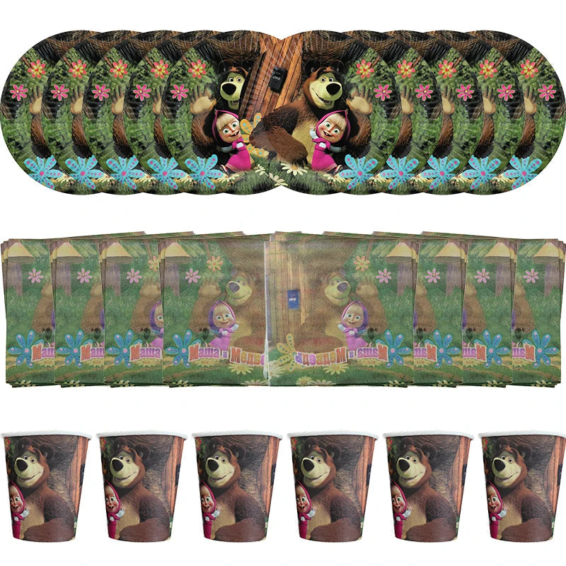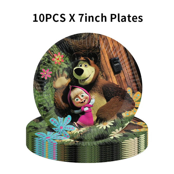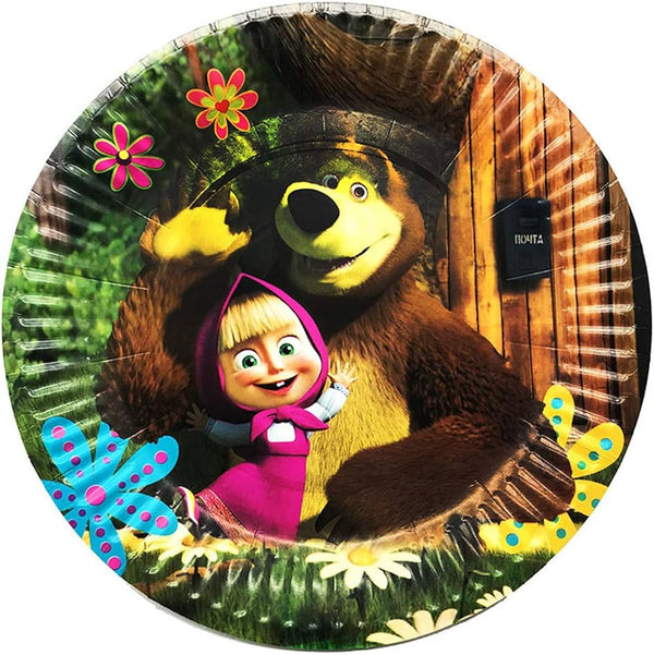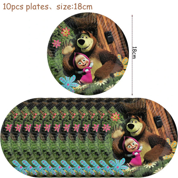 Set me 10 pjata kartoni me Masha dhe ariu, 18 cm