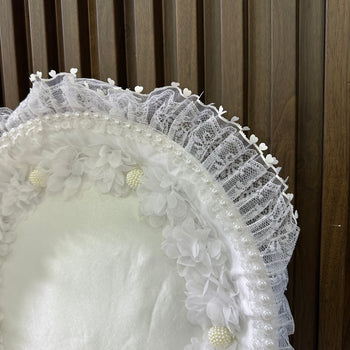Tabaka dekorative e bardhë me dantellë dhe lule