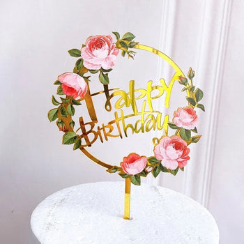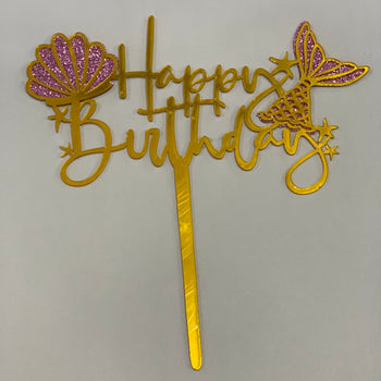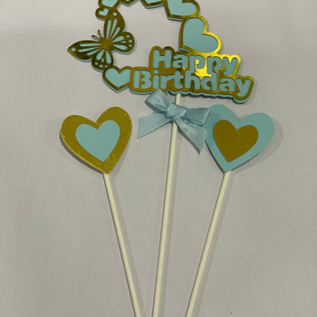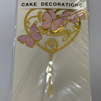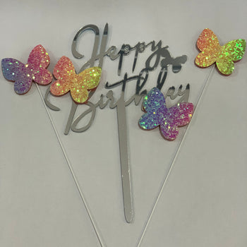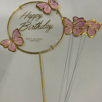 Dekor për tortën “Happy Birthday” me flutura (cake topper)