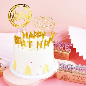 Qirinj shumëngjyrësh për tortën me shkrim ' Happy Birthday'