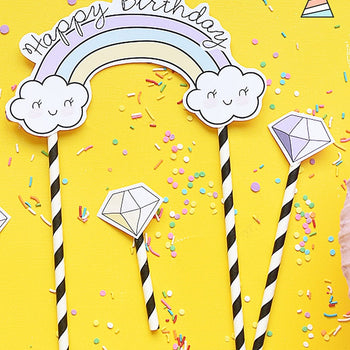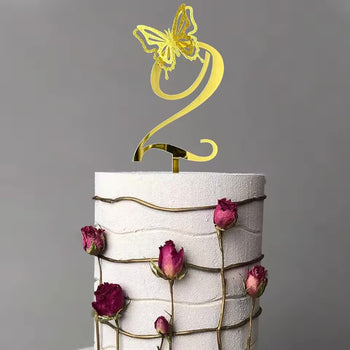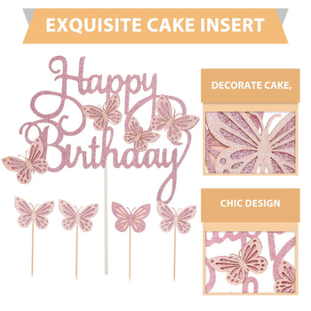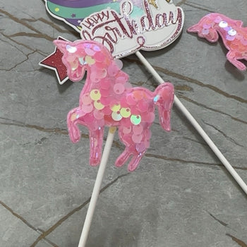 Cake toppers me yje, henë, re e shkrim “Happy Birthday, make a wish”