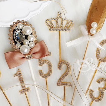 Kurorë për tortën me detaje lulesh e gurë zbukurues