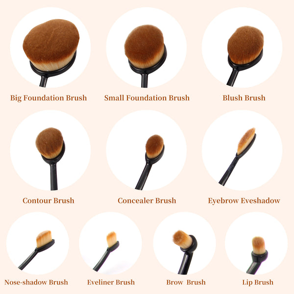 Set me 10 furça me funksione të ndryshme për të lyer të gjithë fytyrën; Furça për fondatinë; buzë, highlighter, kontur, blush etj si në foto: